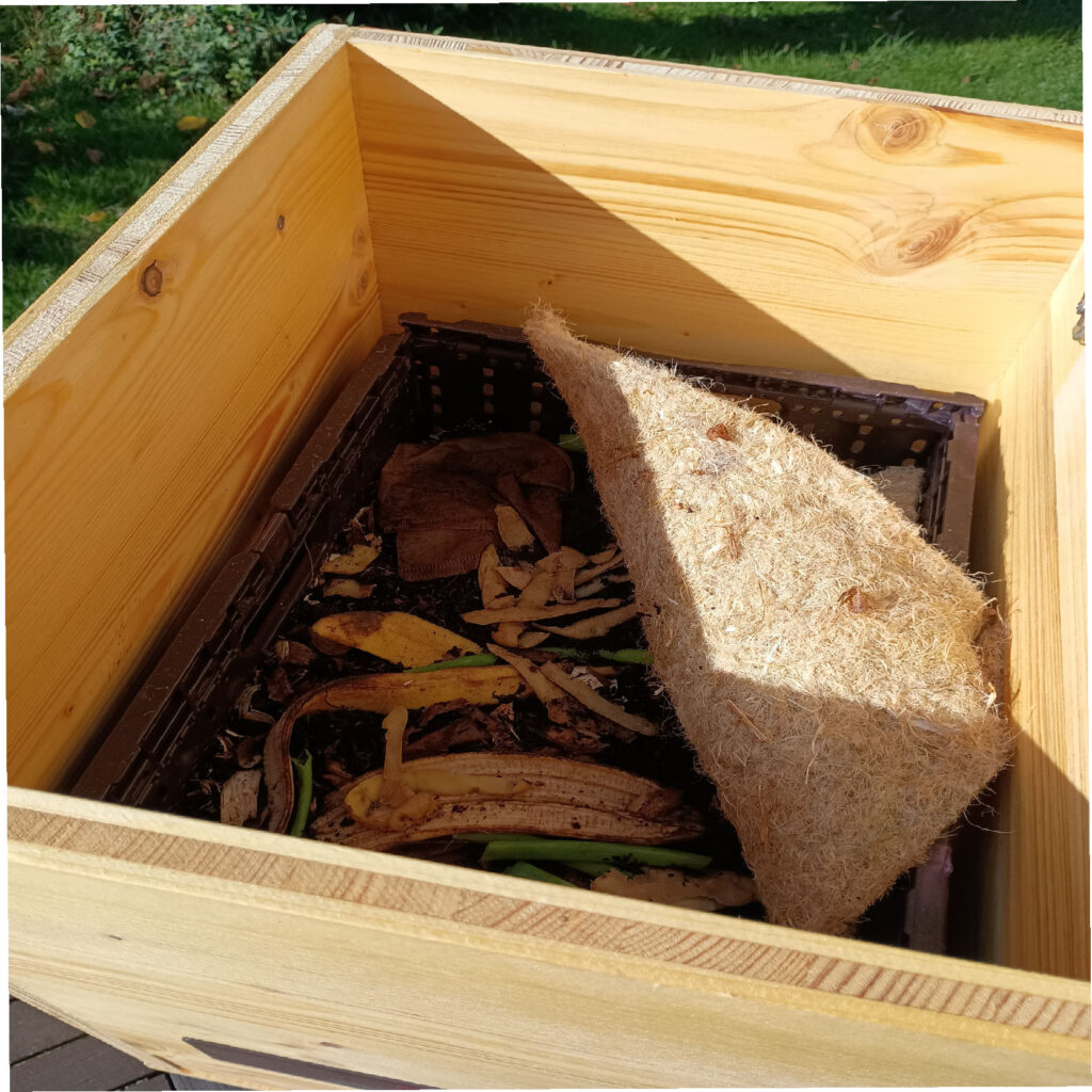 Eine Wurmkiste im Außenbereich des Ladens, ein zentraler Sammelpunkt für Biomüll bis hin zur externen Lösung im Rahmen einer ‚Wurmfarm as a Service‘- Vereinbarung mit ‚Pick-up‘-Komponente.