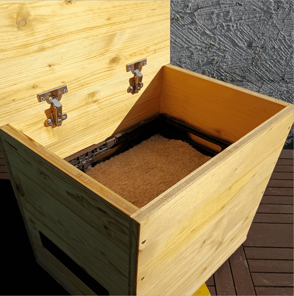Indoor-Wumhabitate sind Wurmkomposter in Form einer geschlossenen Holzkiste in der Kompostwürmer in einem Wechselsystem frischen Bio-Abfall zu Wurmhumus verarbeiten.